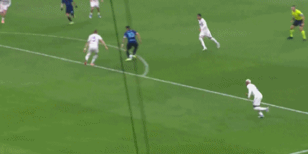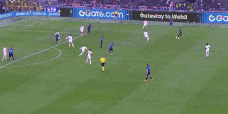 第8分钟,恰尔汗奥卢开出任意球,劳塔罗头球顶高
